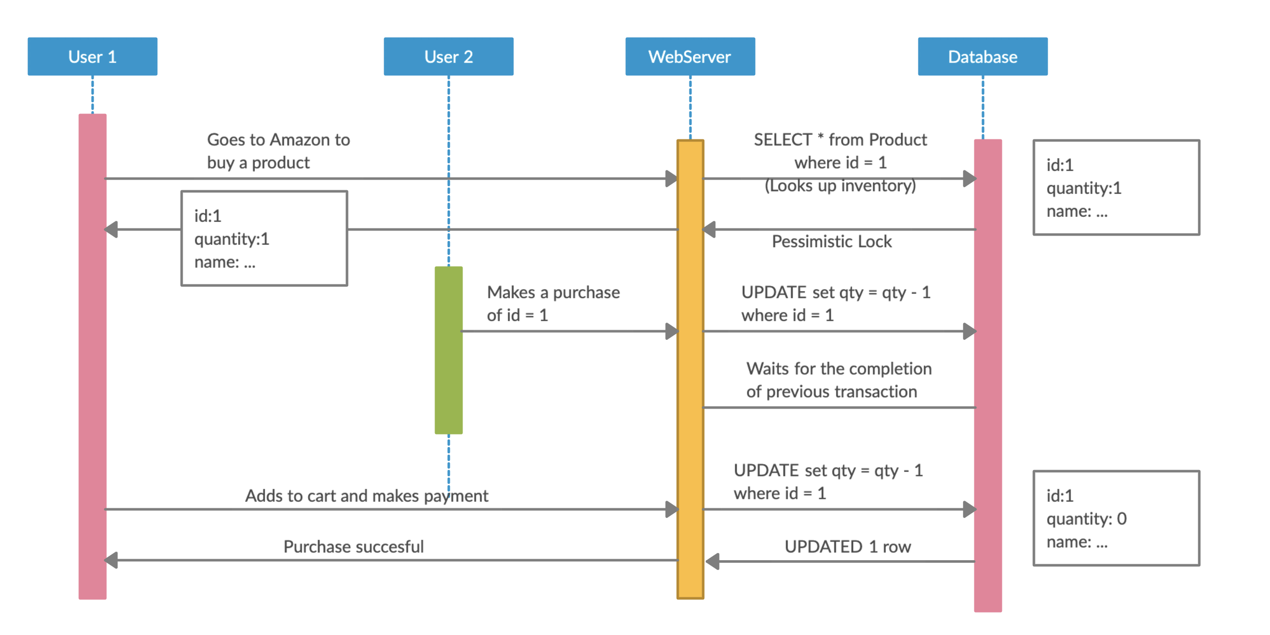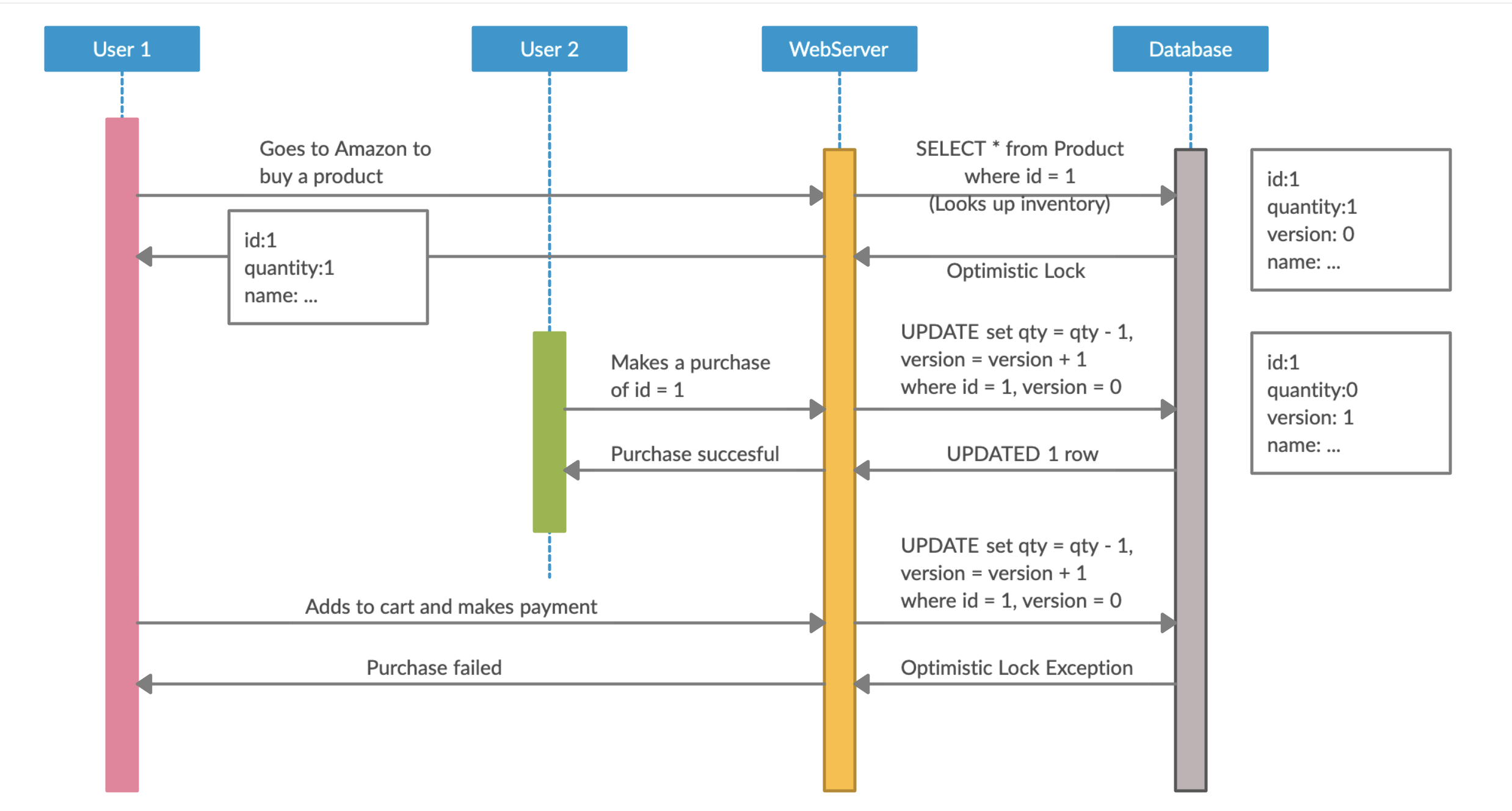 - Before payment (usually done at multiple places), a property of the row is evaluated to check for staleness (version in JPA/Hibernate, timestamp or others in some cases as well).